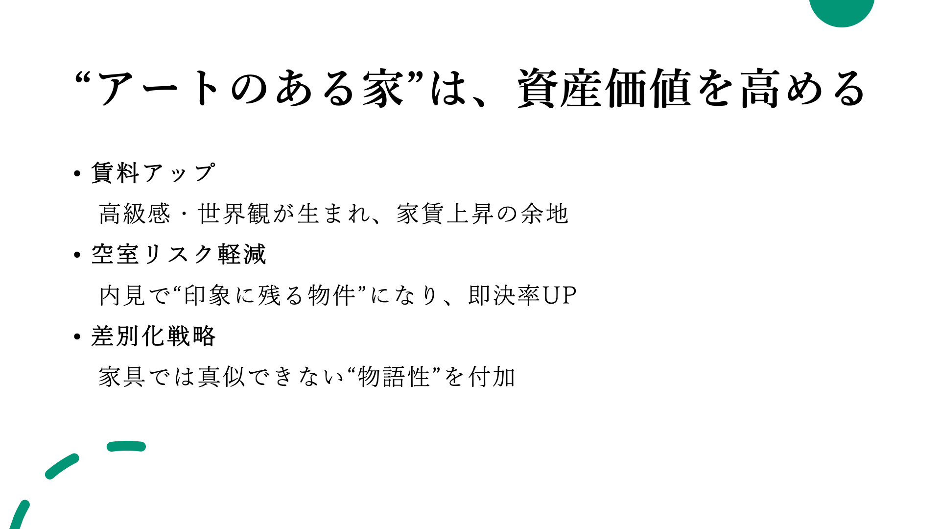 アートのある空間で高付加価値化を図り、質の高い入居者を獲得。教育文化地域では再開発による中長期の価値上昇も期待でき、地域文化を支える社会的投資としても魅力が高まります。